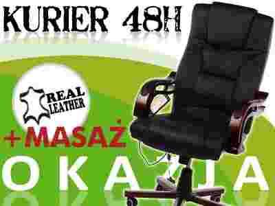 FOTEL BIUROWY Z MASAZEM SKORA DREWNO + GRATIS