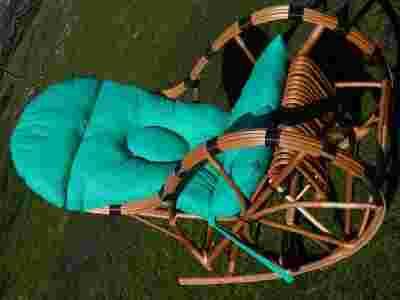 Fotel bujany z polskiej wikliny + poducha w kolorze ZIELONYM