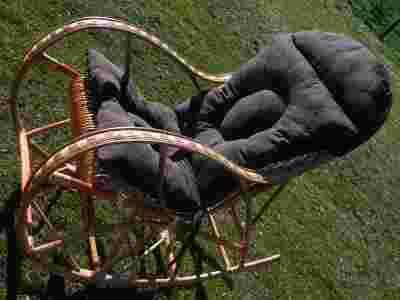 Na innych aukcja dostępne fotele bujane z poduszkami w innych kolorach.