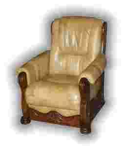 FOTEL DĘBOWY, MAŁY, SKÓRA NATURALNA