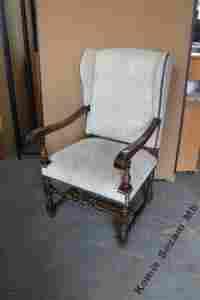 Drobne przetarcia na podłokietnikach dodają uroku tego pięknego fotela.