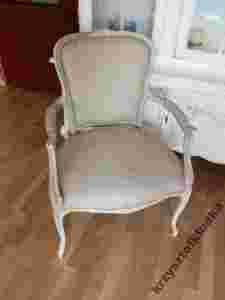 fotel ludwik oryginał ,shabby chic,bielony,płótno