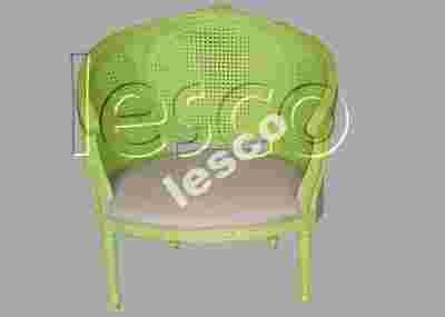 Jest to pięknie zrobiona replika replika starych mebli francuskiej prowansji w jednym z najbardziej wartościowych i najdroższych drewien – mahoniu. Fotele, ktorych mamy więcej, są bardzo stabilne i wygodne z ciekawą, obecnie modna kolorystyka shabby seledynowo – popielatą. Podwójny, od wewnątrz i zewnątrz wyplot rattanowy z bardzo wygodną na sprężynach tapicerką siedziska.