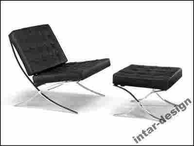 FOTEL SKÓRA insp. BARCELONA, VAN DER ROHE PODNÓŻEK