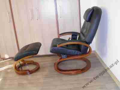 FOTEL WYPOCZYNKOWY, RELAKSUJĄCY Z MASAŻEREM + PODNÓŻEK, STILISTA OGRZEWANY KOLORU CZARNEGO