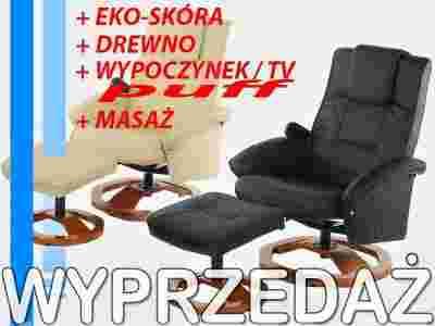 FOTEL TV WYPOCZYNKOWY Z MASAŻEM + PUFF ekoSKÓRA