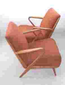 Stolarka meblowa poddana całkowitej renowacji. Stary i nieestetyczny lakier nitro zastąpiliśmy miękkim woskiem i olejem meblarskim. Obicie oryginalne w kolorze rudym, zachowane w stanie dobrym/ bardzo dobrym (kilka obtarć oraz delikatne wyblaknięcie materiału na całości).