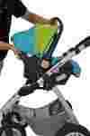 FOTELIK BOBBIWAY WYPOSAŻONY JEST WE WKŁADKĘ REDUKCYJNĄ ZAPEWNIAJĄCĄ DZIECKU KOMFORT PODCZAS JAZDY , PRZYKRYCIE NA NÓŻKI I BUDKĘ ZAPINANĄ NA NAPY.