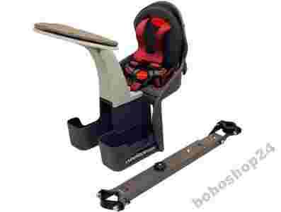 Na metalowym stelażu umieszcza się fotelik za pomocą specjalnej zakrętki. Trwa to kilka sekund, tak więc jeśli rodzic chce pojeździć bez dziecka fotelik może odpiąć bardzo szybko. Fotelik jest odpowiednio zaprojektowany aby utrzymywać wygodną pozycję dziecka oraz nie krępować ruchów rodzica. Dzięki temu jest małych rozmiarów.