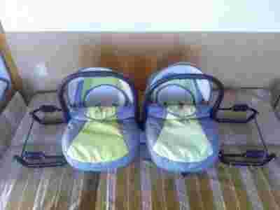 Dodatkowe informacje: Stan: Używany Waga (z opakowaniem): 7.50 [kg] Producent: Inne Dodatkowe informacje: Wkładka dla niemowląt, Daszek przeciwsłoneczny, Adaptery do wózka, Nosidełko, bujaczek, Pokrowiec na nóżki, Zdejmowane pokrycie Kolor: Odcienie szarości i srebra, Odcienie zieleni