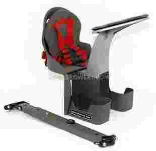 Na metalowym stelażu umieszcza się fotelik za pomocą specjalnej zakrętki. Trwa to kilka sekund, tak więc jeśli rodzic chce pojeździć bez dziecka fotelik może odpiąć bardzo szybko. Fotelik jest odpowiednio zaprojektowany aby utrzymywać wygodną pozycję dziecka oraz nie krępować ruchów rodzica. Dzięki temu jest małych rozmiarów. Fotelik ma 5-punktowe pasy bezpieczeństwa, które dodatkowo są regulowane dla różnego wieku dziecka. Fotelik ma podpórki na nogi, również z regulowaną wysokością. Siedzisko fotelika jest miękko wyściełane, przez co dziecko ma komfort podróżowania. Z przodu fotelika umieszczona jest specjalna innowacyjna podpórka,również wyściełana, dzięki temu dziecko może położyć główkę i się bezpiecznie zdrzemnąć. Podpórka ta też zwykle służy dzieciom do zabawy.