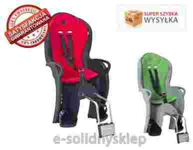 Fotelik do mocowania z tyłu roweru wyposażonego w bagażnik lub nie. Posiada regulowane podpórki na stopy, osłaniające z boku podłokietniki i wyprofilowane oparcie.