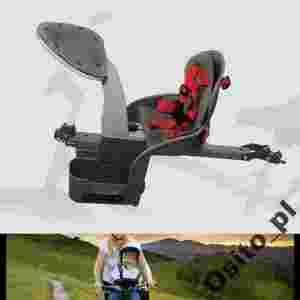 Specjalny system szybkiego montażu pozwala zdjąć fotelik z roweru w ciągu sekundy. Opis produktu Dzięki zastosowaniu specjalnej konstrukcji fotelika pasuje od do każdego roweru! Nie ma tu znaczenia czy jest to rower damski czy męski, szosowy, crossowy, górski, turystyczny czy miejski, do każdego pasuje! Jest to możliwe poprzez zastosowanie innowacyjnego rozwiązania i umieszczenia fotelika na specjalnie zaprojektowanym stelażu. Stelaż montuje się tuż nad ramą roweru, z przodu pod główką kierownicy, z tyłu pod siodełkiem. Stelaż można regulować w każdej płaszczyźnie, długość, wysokość zamocowania aby uzyskać prawidłowy poziom. W zestawie są dodatkowe obręcze oraz dwa komplety śrub różnej długości aby dopasować do każdego rozmiaru grubości ramy roweru. Ważne – stelaż nie jest montowany bezpośrednio na ramie roweru, bo wzdłuż ramy biegną linki przerzutek i hamulców! Na metalowym stelażu umieszcza się fotelik za pomocą specjalnej zakrętki. Trwa to kilka sekund, tak więc jeśli rodzic chce pojeździć bez dziecka fotelik może odpiąć bardzo szybko. Fotelik jest odpowiednio zaprojektowany aby utrzymywać wygodną pozycję dziecka oraz nie krępować ruchów rodzica. Dzięki temu jest małych rozmiarów. Fotelik ma 5-punktowe pasy bezpieczeństwa, które dodatkowo są regulowane dla różnego wieku dziecka. Fotelik ma podpórki na nogi, również z regulowaną wysokością. Siedzisko fotelika jest miękko wyściełane, przez co dziecko ma komfort podróżowania. Z przodu fotelika umieszczona jest specjalna innowacyjna podpórka,również wyściełana, dzięki temu dziecko może położyć główkę i się bezpiecznie zdrzemnąć. Podpórka ta też zwykle służy dzieciom do zabawy.