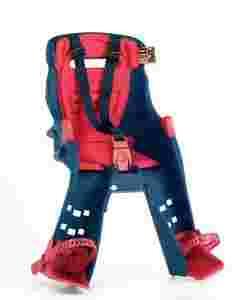Przedni fotelik przeznaczony dla dzieci od 7 – 8 miesiąca życia. Dwufunkcyjna poprzeczka pozwala dziecku siedzieć wyprostowanym oraz zwiększa role pasów bezpieczeństwa. Po opanowaniu przez dziecko umiejętności samodzielnego siedzenia poprzeczkę można zdemontować. Centralny uchwyt w skorupie ułatwiający przenoszenie. Wysoka wyściółka doskonale tłumi mała drgania oraz zapewnia komfort termiczny, zarówno w chłodne jak i gorące dni. Wyściółka wykonana jest z materiału nie nasiąkającego wodą. Trzypunktowe, regulowane pasy bezpieczeństwa zamykane bezpieczną klamrą, której dziecko nie może samo otworzyć. Trzystopniowa regulacja podnóżków pozwala na dopasowanie do długości nóg dziecka. Ich konstrukcja eliminuje możliwość wkręcenia stopy pasażera w szprychy koła. Mocowanie do główki ramy o średnicy od 32-52mm.