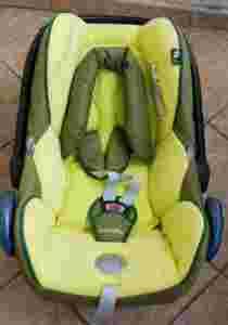 Mam do sprzedania Fotelik samochodowy MAXI-COSI Cabrio FIX 0-13 kg w kolorze jasno zielonym. Fotelik używany przez jedno dziecko, po zdjęciu wkładki dla niemowląt materiał trochę odbarwiony (wszystko widoczne na zamieszczonych zdjęciach)