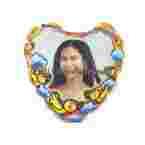 Foto balon w kształcie serca w rozmiarze A3 w komplecie z nóżką, podstawką i ustnikiem. Balon wykonany z połączonego materiału PCV z papierem odporny na wode. Druk wykonujemy ze zwykłych drukarek atramentowych ze standardowym tuszem np: typu ink mate, ink jet poprzez włożenia arkusza z balonem do drukarki a następnie "wydrapanie" formy balonu z kartki, nadruku nie utrwalamy w prasach termotransferowych. Nadruk jest bardzo trwały.