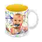 Ceramiczny kubek klasy A+ o pojemności ok. 330 ml z żółtym, lakierowanym wnętrzem, z nadrukiem wykonanym według Twojego projektu.