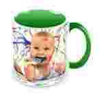 Ceramiczny kubek FUNNY klasy A+ o pojemności ok. 330 ml z wnętrzem i uszkiem w kolorze zielonym oraz nadrukiem wykonanym według Twojego projektu.