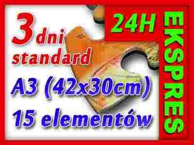 • Fotopuzzle o wielkim formacie A3 (~42x30cm) składające się z 15 elementów