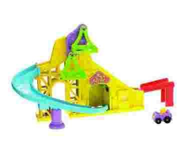Kolejki górskie zawsze budziły emocje u dzieci i teraz, dzięki firmie Fisher-Price, możesz mieć taką w domu! Oto kolejka górska People Wheelies - wystarczy pokręcić korbą by ustawiony na taśmociągu samochodzik został wciągnięty na szczyt, po czym zjechał po karkołomnej rampie i wyjechał z paszczy lwa! Dodatkową atrakcją jest także diabelski młyn dla samochodzika. Niechaj rozpocznie się zabawa!