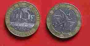 Francja - 10 franków - 1989r - bimetal.......(153)