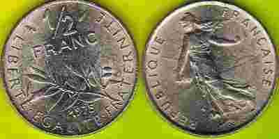 Francja 1/2 Franka 1975 r.