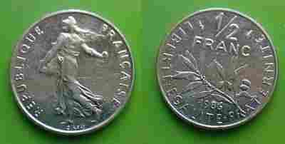 Francja 1/2 Franka 1986.........(766)