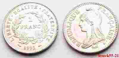 FRANCJA 1 FRANC 1992 ROCZNICA REPUBLIKI - RZADSZA