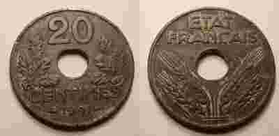 Francja, 20 centimes, 1941 r.