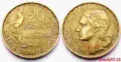 FRANCJA 20 FRANKÓW 1951