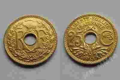 FRANCJA 25 CENTIMES 1939 POZŁACANA Au 14