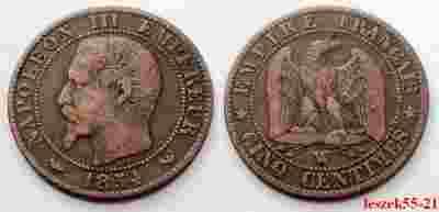 FRANCJA 5 CENTIMES 1854 W NAPOLEON III - RZADKA