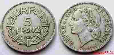FRANCJA 5 FRANKÓW 1935 NIKIEL - RZADSZA