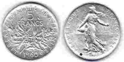 Francja - 5 franków 1960, srebro