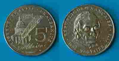 Francja 5 Frank 1994 rok Voltaire od 1zł BCM