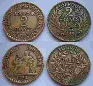 FRANCJA/TUNEZJA FRANCUSKA 2 x 2 FRANCS 1924/1921