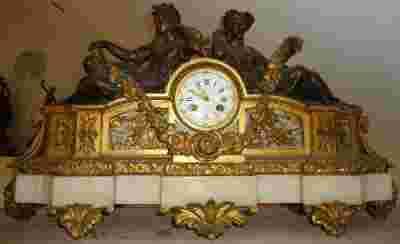 FRANCJA ZEGAR KOMINKOWY XIX w.MARMUR + BRĄZ + ZŁOC