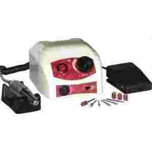 Profesjonalna frezarka do manicure i pedicure. Łatwy system mocowania frezów Twist Lock. Wystarczy przekręcić ruchomą część rączki by włożyć frez. Potężna moc 65W gwarantująca wydajną i komfortową pracę. Płynna regulacja obrotów aż do 35000 obrotów na minutę. Rączka w całości wykonana z nierdzewnej stali. Brak jakichkolwiek plastikowych elementów w rączce gwarantuje bezawaryjne użytkowanie. 4 miejsca łożyskowania za pomocą najnowszej technologii Double Ball Bearing. Cicha praca dzięki zastosowaniu najnowszych materiałów nawet przy maksymalnym obciążeniu. Heat Protection System - automatyczny system zapobiegający przegrzewaniu. Dane techniczne: Napięcie: 115/230V - 50/60Hz Moc: 65W Obroty: 35000obr./min Płynna regulacja obrotów Zmiana kierunków prawo/lewo Sterowanie ręczne lub pedałem Dopuszczalna średnica frezów: 2,32 do 2,35mm Waga rączki: 150g Długość rączki: 13cm Średnica rączki: 26mm (w najgrubszym miejscu) Wymiary jednostki głównej: 13x15x8cm (szer. x dł. x wys.) W zestawie: baza, podstawka pod głowicę, pedał nożny,