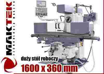 Przemysłowa frezarka uniwersalna przeznaczona dla przemysłu ciężkiego, rzemiosła, niezastąpiona dla narzędziowni i wydziałów remontowych. Maszyna ta wyposażona jest w skrętną głowicę pionową i belkę górną wysuwaną do 500 mm. Duży stół roboczy 1600 x 360 mm o maksymalnym obciążeniu 600 kg pozwala obrabiać nawet duże elementy, natomiast odczyt cyfrowy SINO znacznie ułatwia pracę.