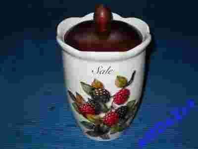 Ceramiczny pojemnik na sól o wysokości = około 19cm z drewnianą przykrywką z kolekcji "Frutti di Bosco" włoskiego koncernu "Nuova Cer" powstałego i istniejącego od 1992r. w Umbertide, małej wiosce w sercu zielonej Umbrii :)