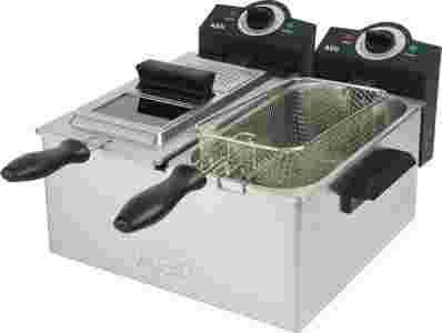 Dwukomorowa frytownica z 2 koszami do smażenia, pozwalająca na wykonanie różnych rodzajów frytek. Możliwość użytkowania jednej komory Obudowa, pokrywa, spirala grzewcza i zbiornik tłuszczu wykonane ze stali szlachetnej Dwa wyjmowane zbiorniki tłuszczu wykonane ze stali szlachetnej Wymienny filtr antyzapachowy i zbierający opary tłuszczu Pokrywa z okienkiem kontrolnym Pojemność 3 l tłuszczu Dwie podwójne kontrolki sygnalizujące stan włączenia oraz grzanie Dwa bezstopniowo regulowane termostaty (130-190 oC) Zabezpieczenie przed przegrzaniem Zasilanie elektryczne: 230 V 50 Hz