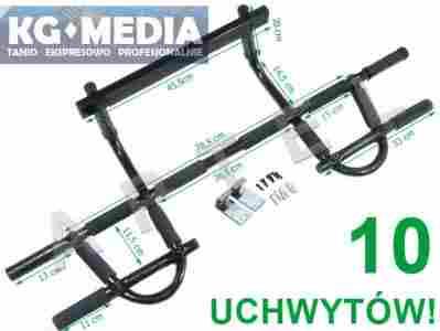 Fabrycznie nowy, solidny drążek do ćwiczeń mocowany na futrynę. Dzięki przemyślanej budowie i 10ciu uchwytom urządzenie te nadaje się do trenowania na wiele sposobów uzyskując tym samym maksymalne efekty.
