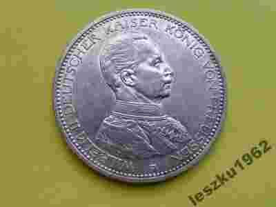 FUNF MARK - 1913r - WILHELM II - PRUSY - SREBRO **