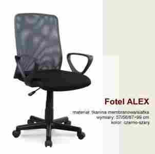 Elegancki i nowoczesny fotel ALEX, wyposażony w wygodne siedzisko i oparcie wykonane z tkaniny membranowej / siatki. Fotel dostępny w kolorze czarno-szarym, czarno, czarno-niebieskim lub czarno-czerwonym.