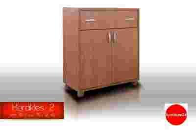 Komoda Herakles 2 jest elegancka i praktyczna, wykonana z wysokiej jakości płyty laminowanej. Posiada jedną bardzo pojemną szufladę oraz dwie szafki znajdujące się pod szufladą. Możliwe jest zamówienie różnych kolorów drewna. Dostępne kolory to: buk, olcha, calvados.