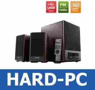 Głośniki 2.1 Microlab FC530U zostały zaprojektowane z myślą o odtwarzaniu dźwięku w najwyższej jakości. Zestaw został wyposażony w radio FM, port USB2.0 oraz czytnik kart pamięci dzięki czemu możesz odtwarzać ulubioną muzykę z radia lub bezpośrednio z pamięci przenośnej – nie musisz podłączać głośników do komputera!