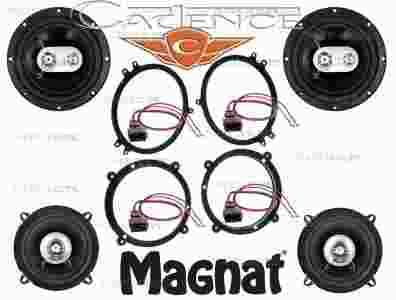 Profesjonalny system głośników do kompleksowego nagłośnienia samochodu. Elementy systemu dobrane mocowo i brzmieniowo. Zestaw dedykowany do współpracy pod samym radiem oferuje bardzo dobrą dynamikę, dużo basu i sopranu. Podstawą systemu są doskonałe amerykańskie głośniki Cadence. W komplecie wszystkie pokazane ne zdjęciu akcesoria, dystanse i redukcje i drzwi. Dzięki dołączonym akcesoriom bardzo prosty montaż z którym poradzi sobie każdy kierowca (wizyta w warsztacie kosztuje).