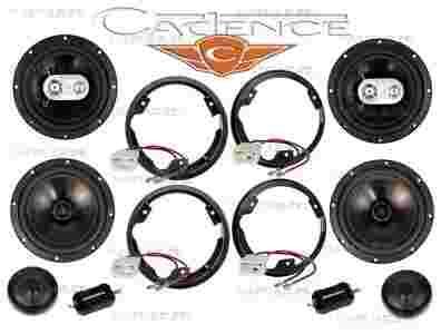 Profesjonalny system głośników do kompleksowego nagłośnienia samochodu. Elementy systemu dobrane mocowo i brzmieniowo. Zestaw dedykowany do współpracy pod samym radiem oferuje bardzo dobrą dynamikę, dużo basu i sopranu. Podstawą systemu są doskonałe amerykańskie głośniki Cadence. W komplecie wszystkie pokazane ne zdjęciu akcesoria, dystanse i redukcje i drzwi. Dzięki dołączonym akcesoriom bardzo prosty montaż z którym poradzi sobie każdy kierowca (wizyta w warsztacie kosztuje).