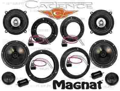 Profesjonalny system głośników do kompleksowego nagłośnienia samochodu. Elementy systemu dobrane mocowo i brzmieniowo. Zestaw dedykowany do współpracy pod samym radiem oferuje bardzo dobrą dynamikę, dużo basu i sopranu. Podstawą systemu są doskonałe amerykańskie głośniki Cadence. W komplecie wszystkie pokazane ne zdjęciu akcesoria, dystanse i redukcje i drzwi. Dzięki dołączonym akcesoriom bardzo prosty montaż z którym poradzi sobie każdy kierowca (wizyta w warsztacie kosztuje).