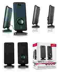 Dwudrożny zestaw głośnikowy 2.0 „Vento" na każde biurko. Dzięki kompaktowym rozmiarom nie zajmuje dużo miejsca, a mimo to cechuje go stabilność ustawienia. Dzięki nowoczesnemu wzornictwu zestaw głośników idealnie pasuje do płaskich monitorów, a także ma przyjemne brzmienie. Nowoczesnym rozwiązaniem jest również kabel USB, za pomocą którego głośniki są zasilane prądem. Zestaw głośnikowy „Vento“ jest wyposażony w regulator głośności oraz złącze słuchawkowe 3,5 mm. Szczególna cecha: możliwość regulacji głośności w słuchawkach za pomocą regulatora głośności w głośniku.